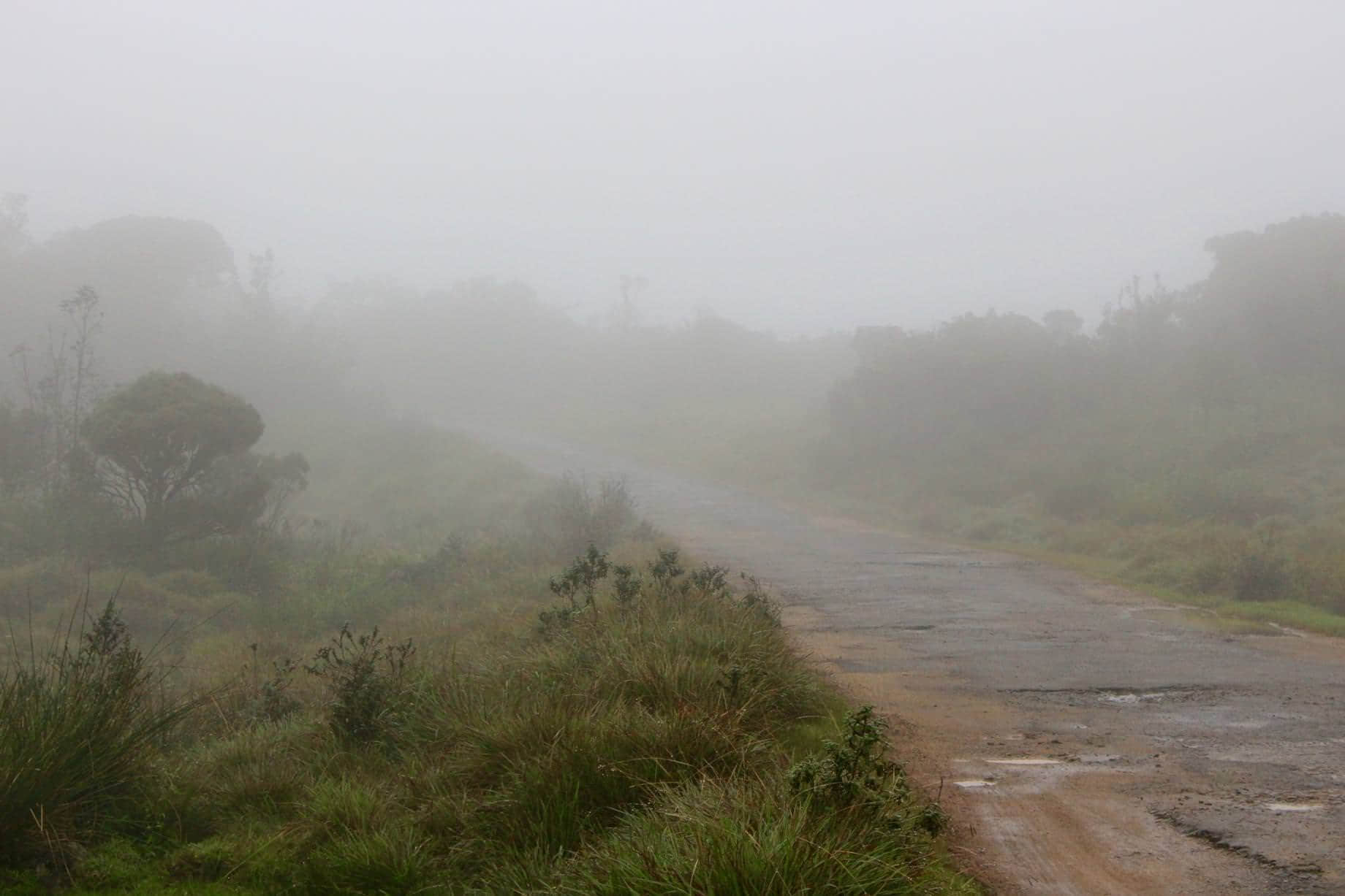 霍頓平原距離 Nuwara Eliya 比較遠,我們還是聘請司機 Hetti 包車前往,為了獲得最佳的視野,早上五點起床,六點出發。到達霍頓平原,已然是早上八點。一路上依山而行,曲曲折折,由於陰雨連連,一路上隨處可見山泥傾瀉,倒也是捏了一把汗。不過一路上的景色倒是讓人驚嘆,馳騁於鄉間小路,穿梭於密林當中,煙霧繚繞,清風拂面,再加上車內播放的斯里蘭卡小曲,那是怎一番暢然自在。