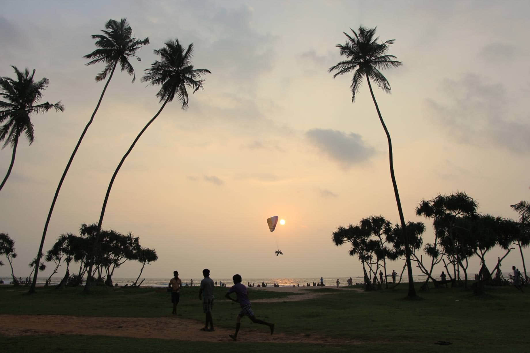 結束了半天的觀光之後,天色已經暗下來。我們住處不遠就是一個很大的海灘。於是傍晚時分便去海灘上悠閒地逛逛,這個海灘相比 Mirissa 的海灘,沒有太多的外國遊客,以本地人居多。沙灘上嬉戲的人們,和那柔和的夕陽,構成了一道別具一格的風景。