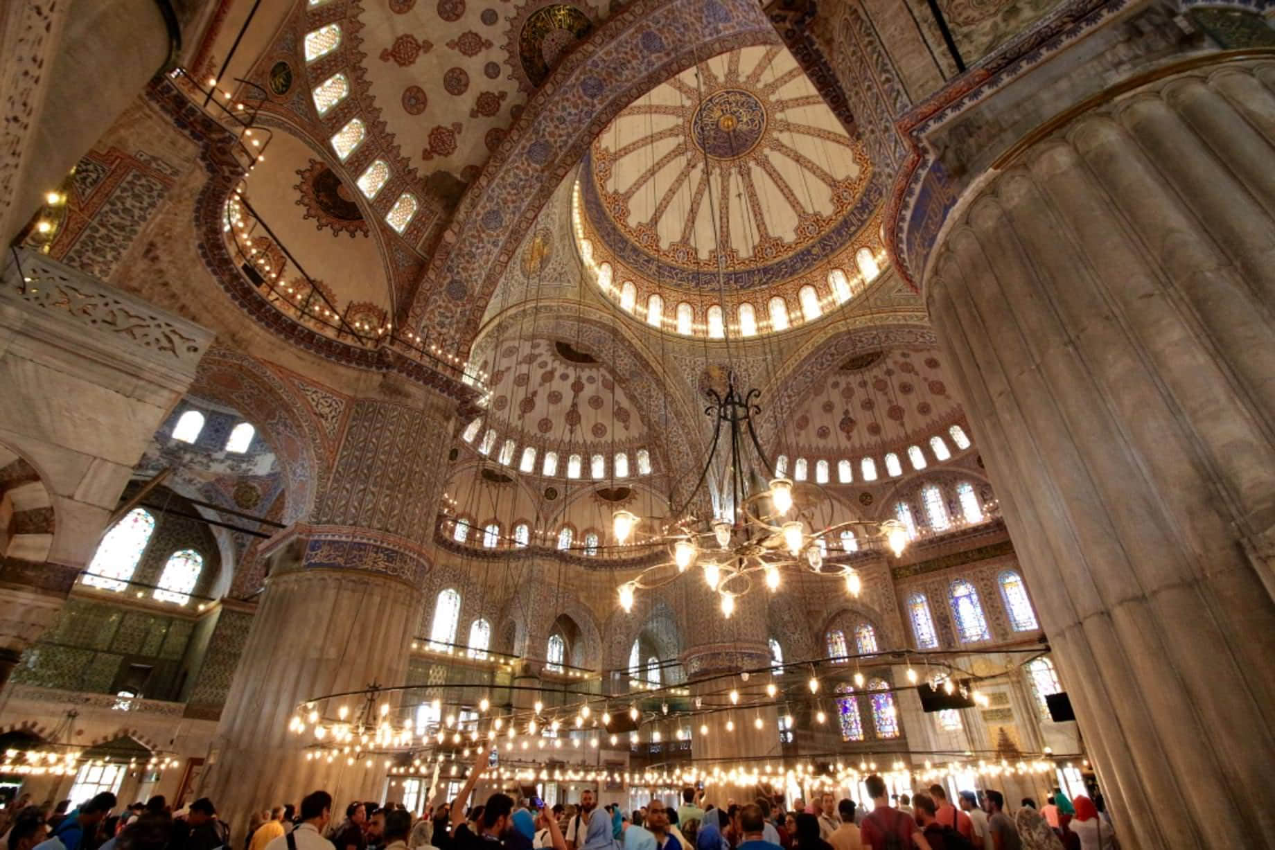 身處藍色清真寺內,你會覺得自己被放空,雖說自己並不十分了解藍色清真寺背後的故事,但這並不影響我對這座建築物的敬畏。在柔和的燈光下,聆聽著誦經人天籟般的歌聲,環顧四周,你會被感染,會被帶動,會覺得你的世界就凝固在了這一刻。
