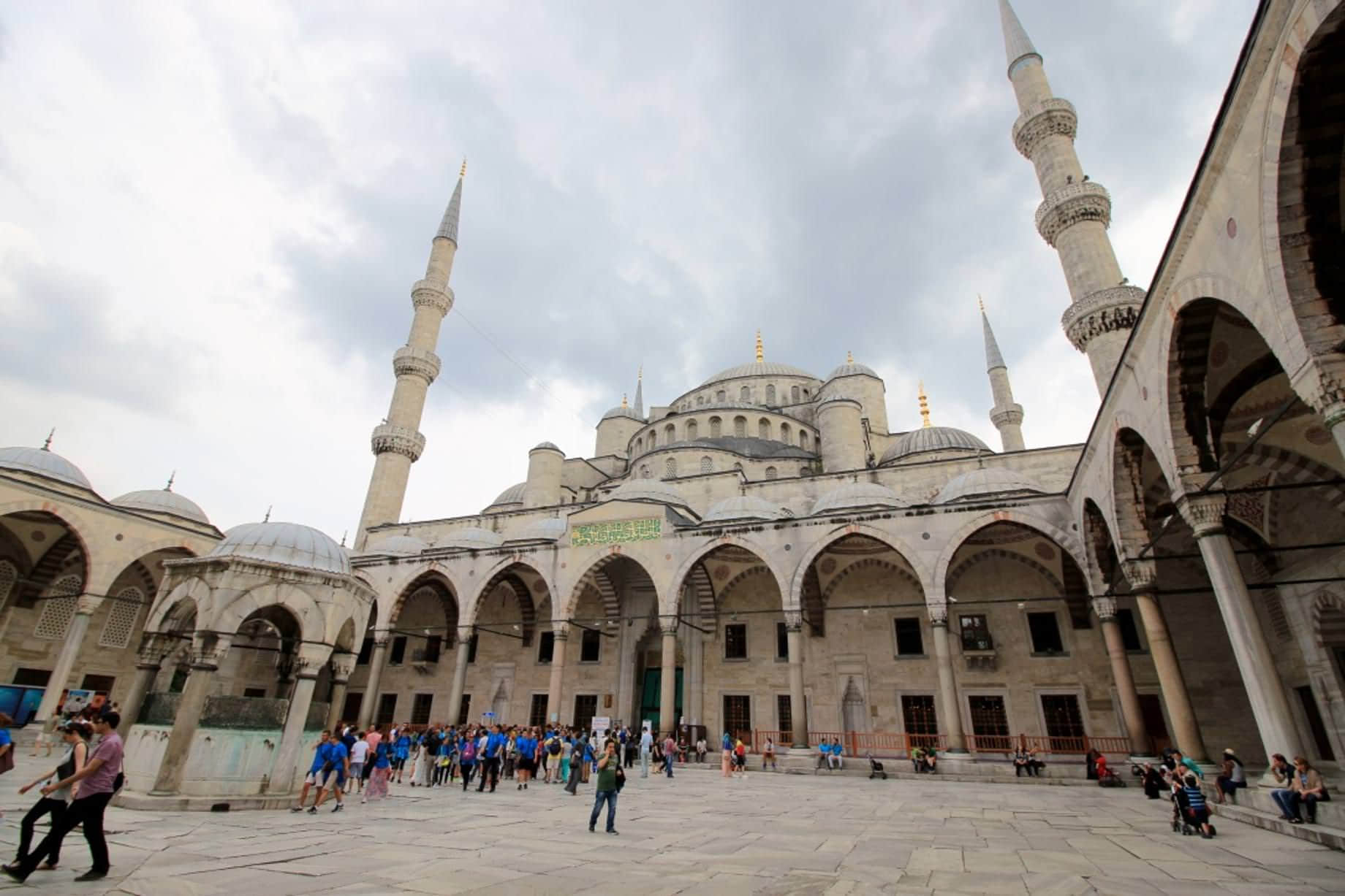 漫長的大餐過後,正式開始遊覽。首先是藍色清真寺,這個經典的不能再經典的地方。之前在很多節目中都有看到這個藍色清真寺,這裏也成了伊斯坦布爾必去景點排名第一的地方。由於我們選的酒店就位於伊斯坦布爾老城區附近,所以藍色清真寺等建築步行即可抵達。