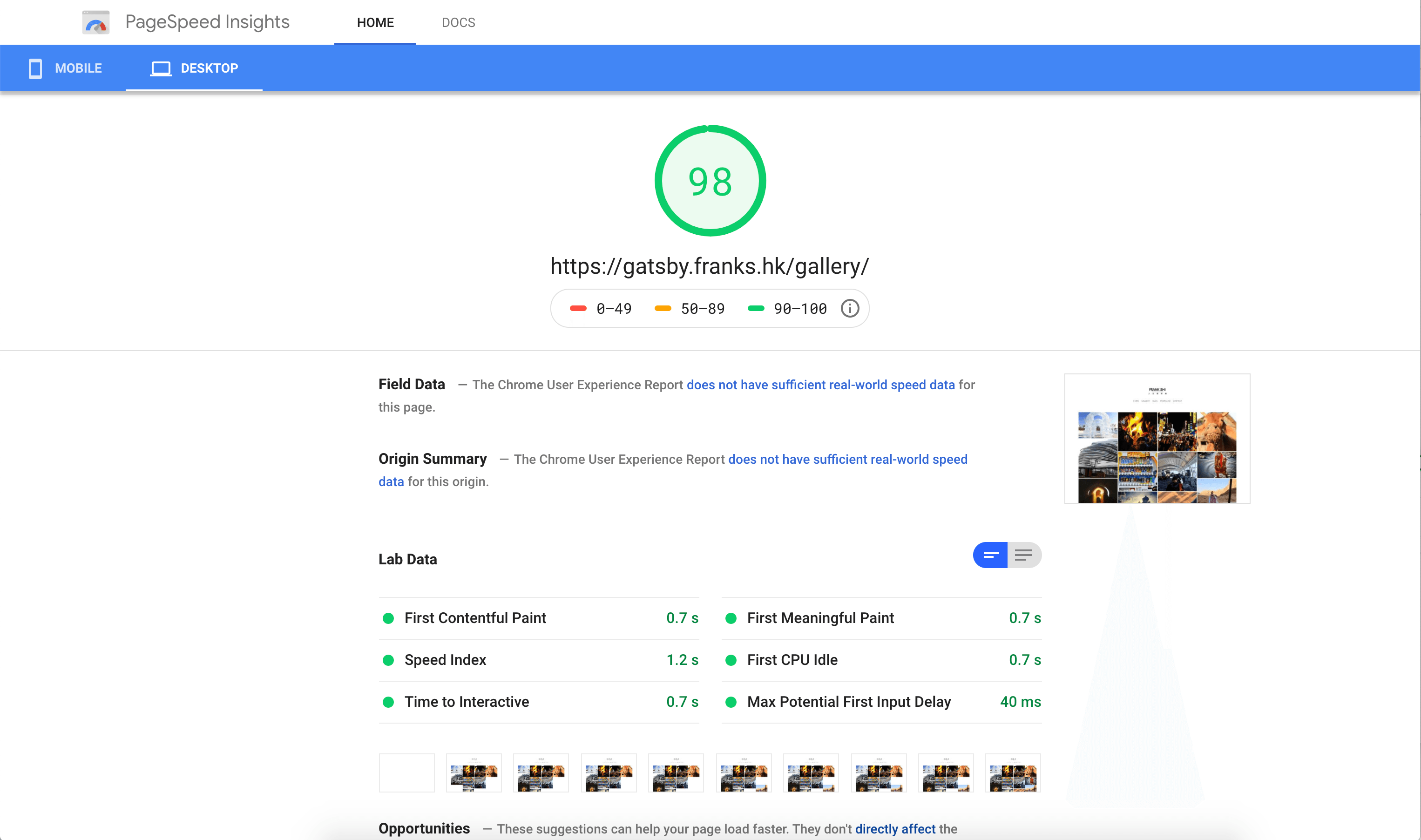 用Gatsby 改寫網站,Google Page Speed Insight 驚現98 的高分