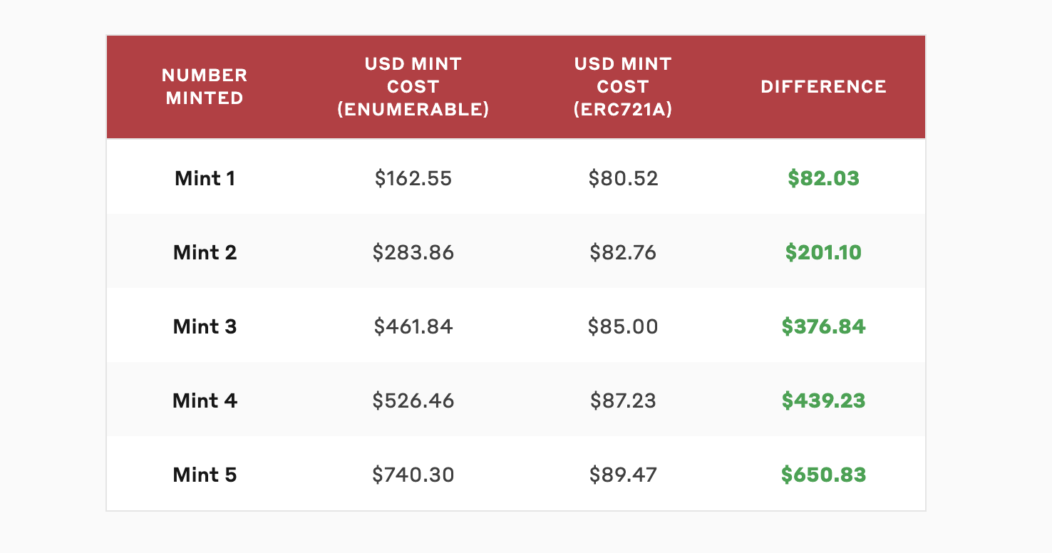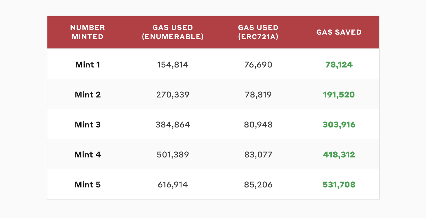 然後,對於 mint function,Azuki ERC721a 也做了優化。